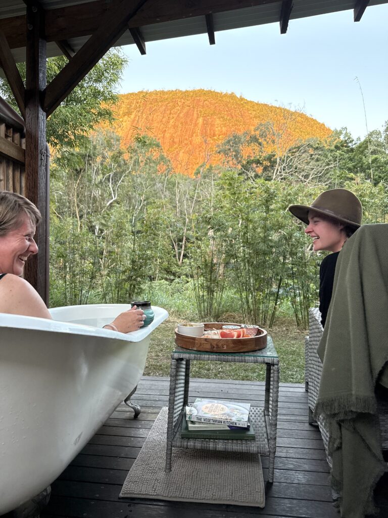 You’ll have your own private bathroom with a view, plus a lovely verandah with a kitchenette—including a gas burner, kettle, Nespresso machine, toaster, basic cookware and utensils to heat your food.